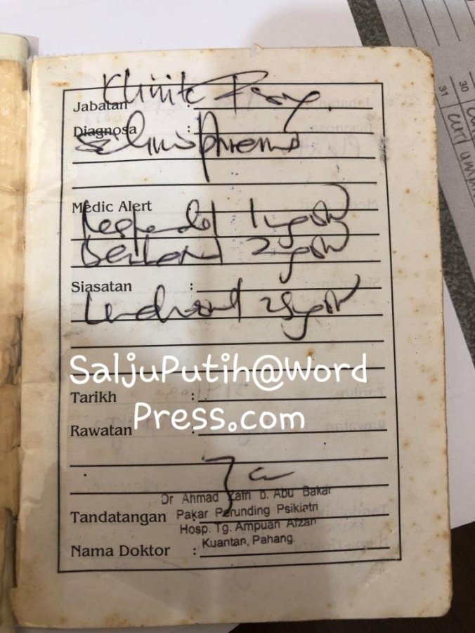Aku membawanya berjumpa pakar psikiatri di Hospital Tg. Ampuan Afzan Kuantan Pahang mengikut appoinment yang ditetapkan & sentiasa menjaga emosi ibu, aku juga sentiasa alunkan bacaan Al Quran serta zikir2 di rumah untuk suasana yang tenang.