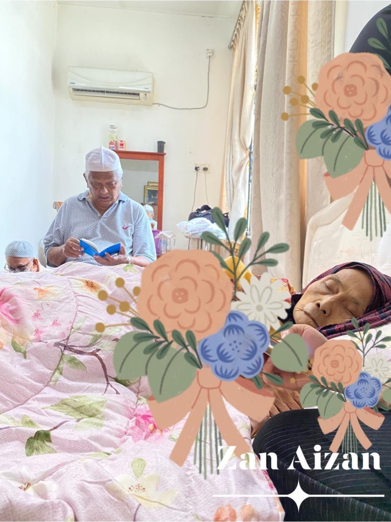Sejak malam sebelumnya, hati kecil ku terdetik untuk bersama beliau. Sejak disahkan beliau menghidapi cancer usus (final stage) 2 minggu yang lalu, hampir setiap hari aku & anak2 menziarahi beliau. Kami membaca Al Quran, Ratib Al Attas & Wirid As Sakran ketika di sisi beliau. Beliau sentiasa menadah tangannya ketika mendengar bacaan kami.
