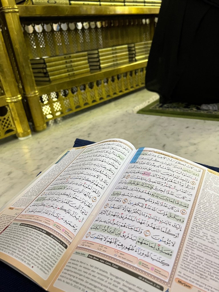 4️⃣ Bagi perempuan yang mempunyai waktu uzur syarie yang agak panjang (10-15 hari), mulakan bacaan semasa di tanah air & berniat/azamlah untuk khatam di tanah suci.