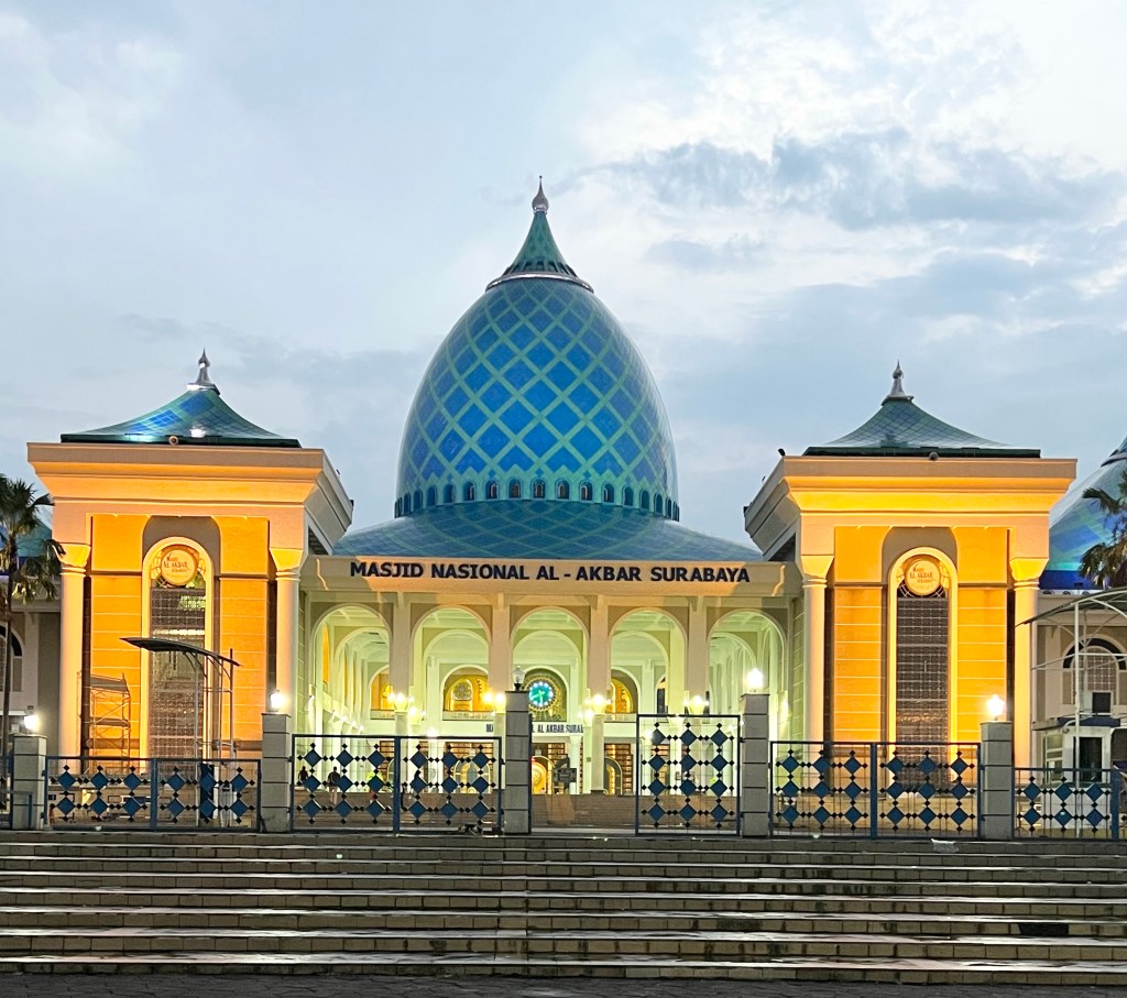 Oleh itu kami meneruskan perjalanan menuju ke Masjid Nasional Al Akhbar Surabaya. Ia merupakan masjid kedua terbesar di Indonesia setelah Masjid Istiqlal di Jakarta. Masjid ini sangat cantik & jika dirujuk kepada info dari pakcik google/wikipedia, ia boleh memuatkan seramai 10 ribu jemaah.