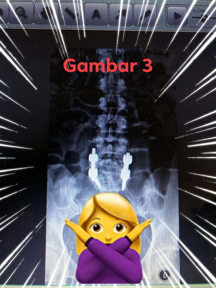 Ini adalah 2 pasang skru yang dimasukkan pada tahun 2012. Manakala Disc di S1/S2 tu adalah Titanium Disc. Both skru & titanium disc are ok. Cuma, disebabkan itu, keadaan telah memaksa disc yang diatasnya bekerja…disc yang bekerja itulah yang terkoyak akibat mengambil alih tugas disc yang dibawahnya. Begitulah dengan kata mudahnya.