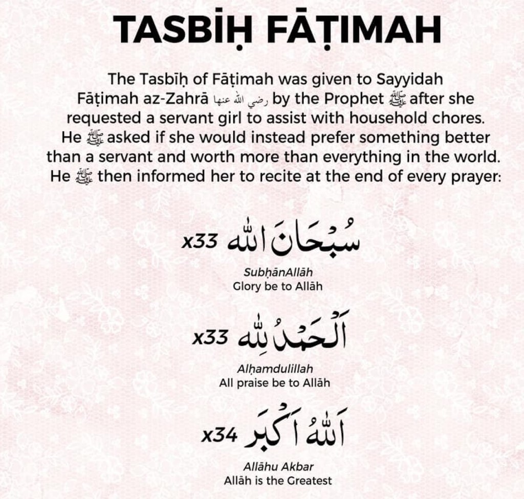 2. Membaca zikir Tasbih Fatimah sebelum tidur.