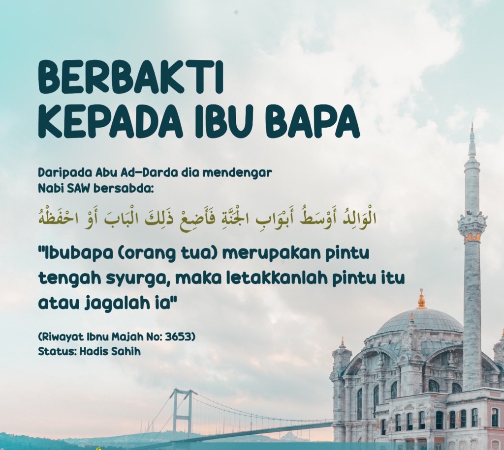 Artinya: Rendahkanlah dirimu terhadap keduanya dengan penuh kasih sayang dan ucapkanlah, “Wahai Tuhanku, sayangilah keduanya sebagaimana mereka berdua (menyayangiku ketika) mendidik aku pada waktu kecil.”