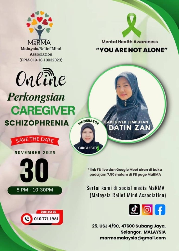 Boleh tonton perkongsian mengenai perjalanan hidup saya bersama ibu yang skizo & bagaimana beliau mula mendapat skizo di link youtube ini: