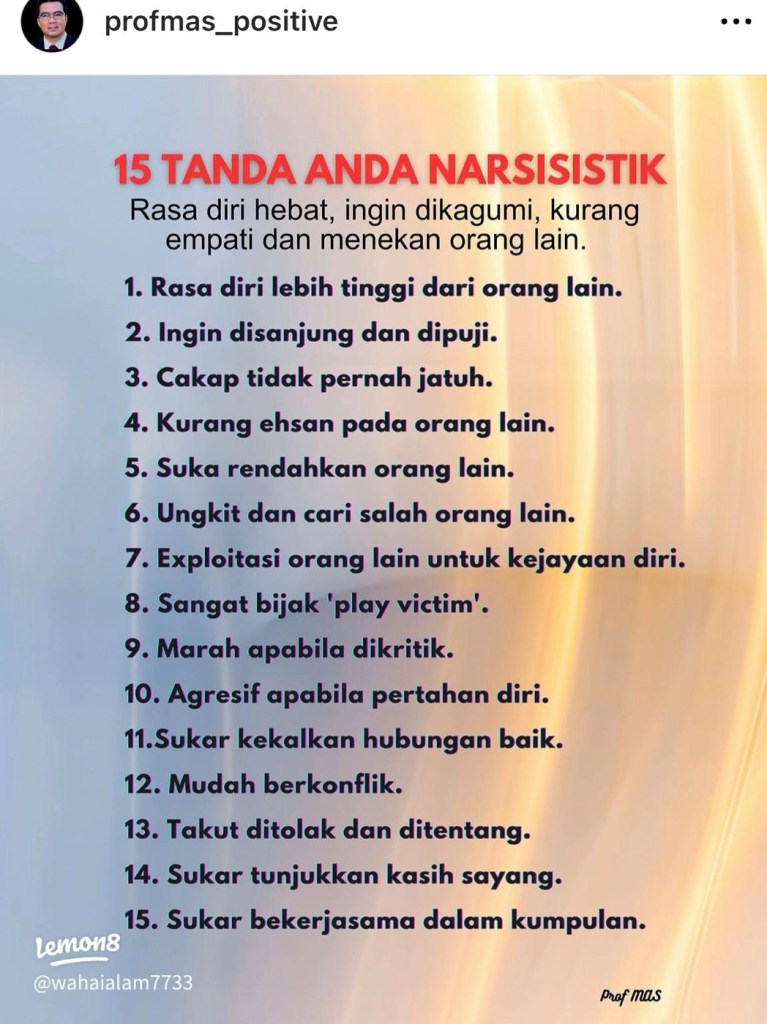 Sebagai info tambahan, saya dibesarkan dalam family yang kucar-kacir & akhirnya menyebabkan ibu saya mengalami masalah mental (skizofrenia). Akibat dari seorang ayah yang baran & ada banyak masalah lain & ibu yang bertahan selama 23 tahun demi anak-anak. Tetapi saya sedaya upaya cuba membina jati diri saya supaya tidak terikut-ikut dengan persekitaran negatif sebagaimana saya dibesarkan. Sedaya upaya saya cuba baiki diri & membesarkan anak-anak saya dengan penuh kasih sayang & didikan agama yang semampunya.