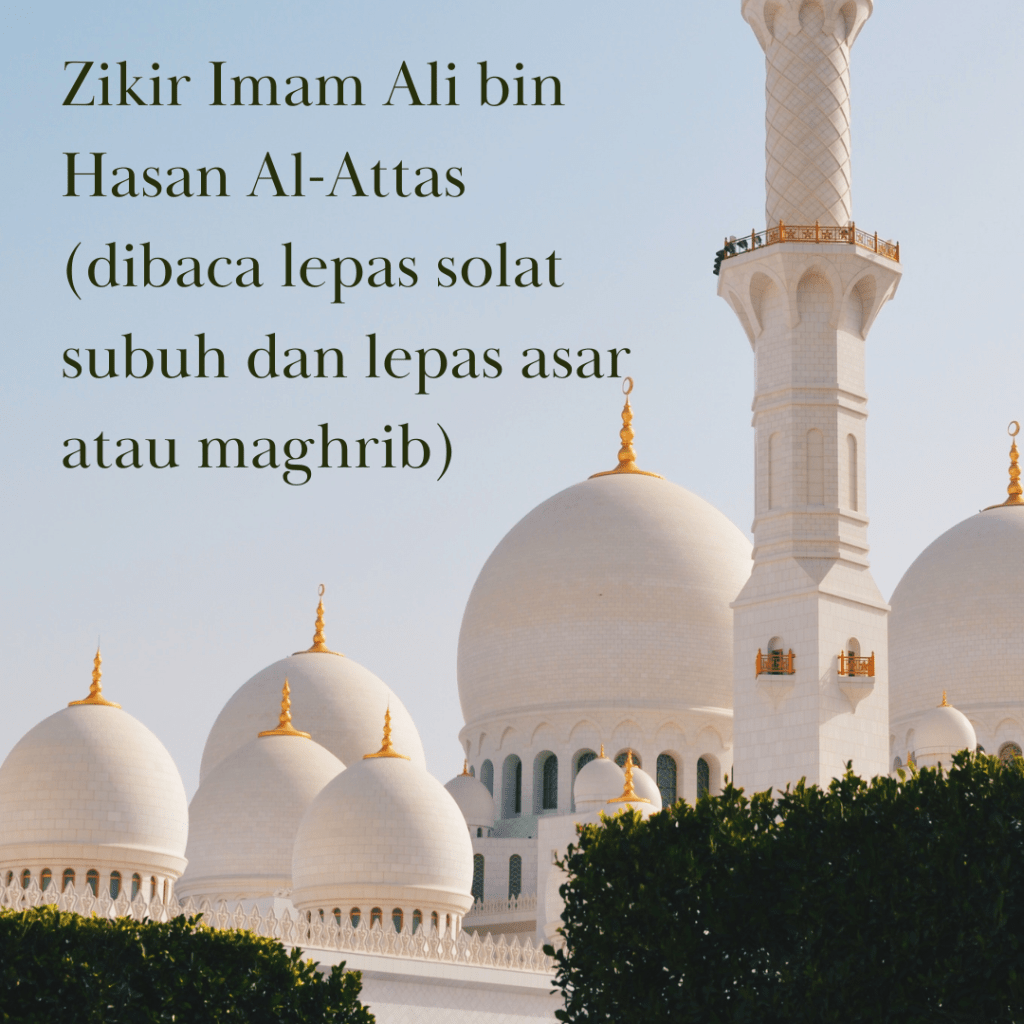 Zikir Imam Ali bin Hasan Al-Attas dibaca lepas salat subuh dan lepas asar atau maghrib.