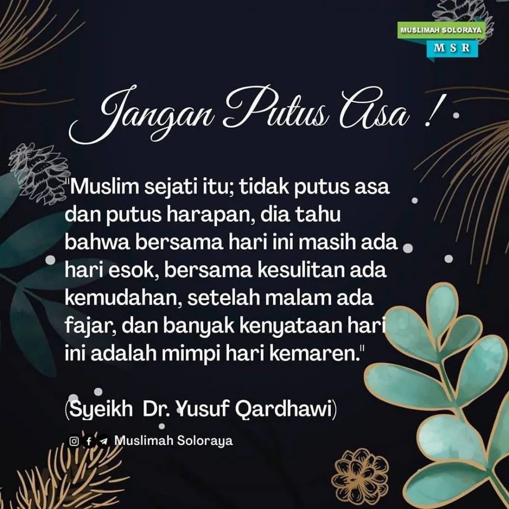 Pelbagai ujian & dugaan telah saya lalui. Saya bersyukur kerana selalu dipandang Allah swt. Walaupun ada hari perit & getir, setakat hari ini saya masih mampu melepasinya. Saya akan terus tersenyum kepada dunia. Tetaplah tersenyum ketika sedang sedih dan maafkan ketika dikecewakan, kerana Allah menyukai orang yang mampu bersabar ketika menghadapi cubaan.